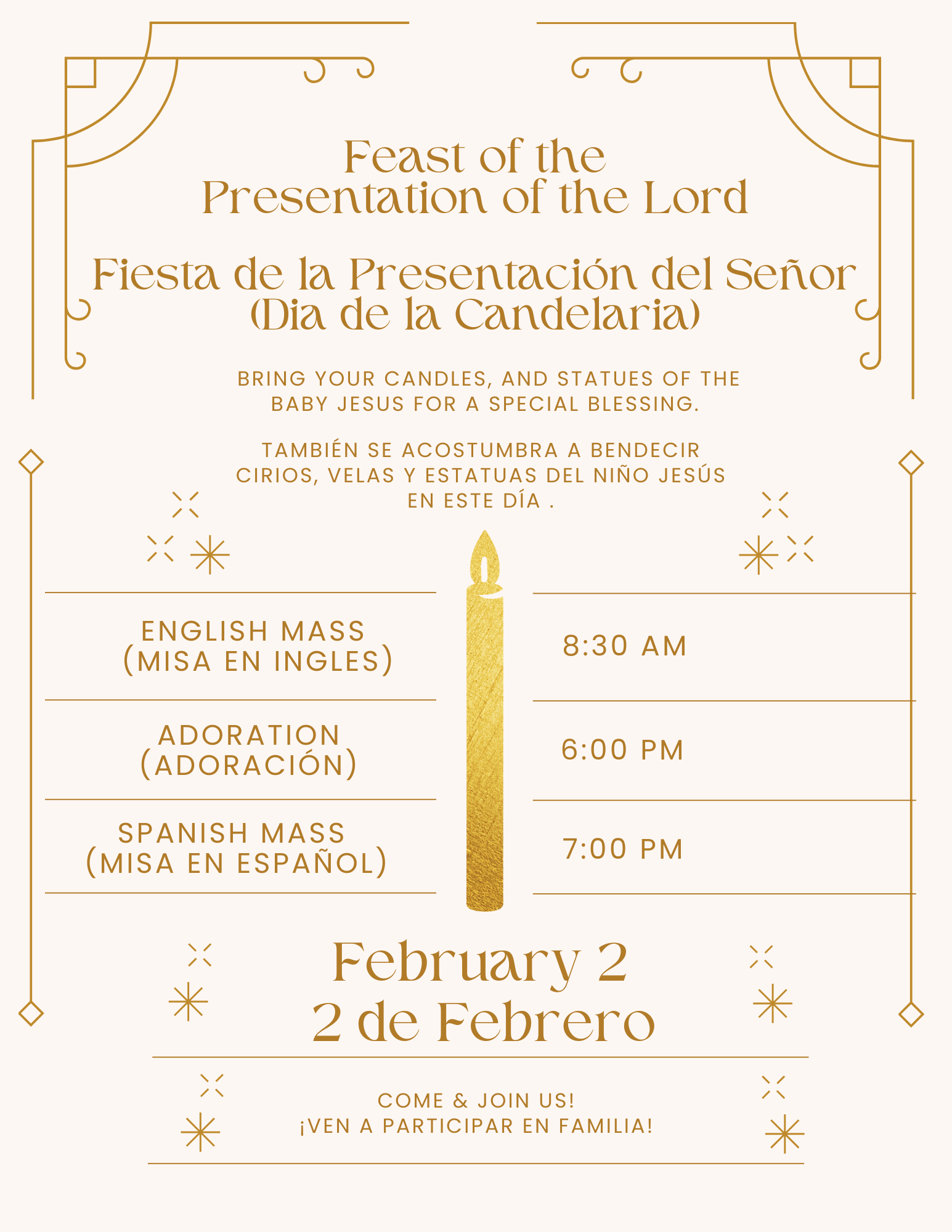 - Thursday/Jueves: 8:30am & 7:00pm Español